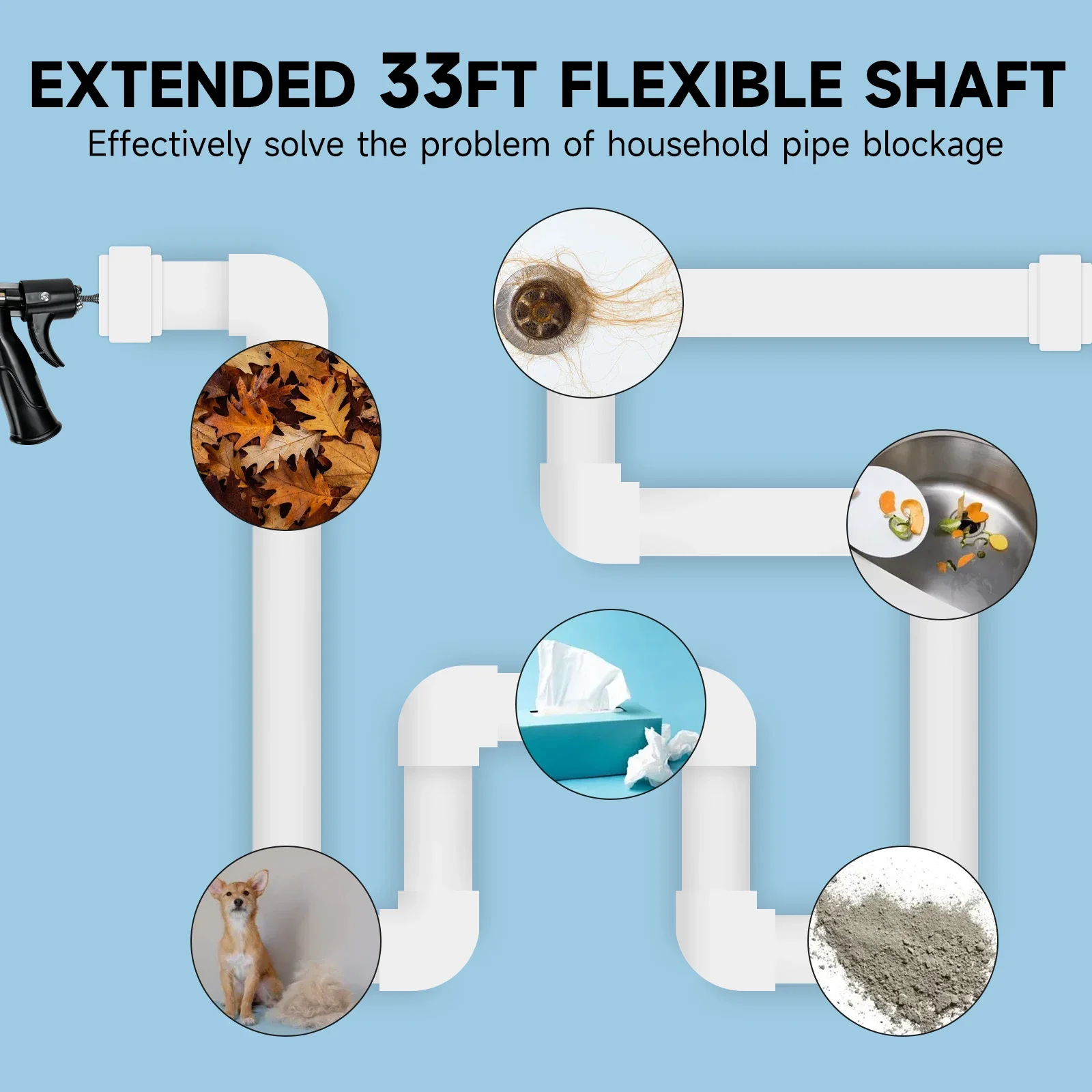 The 7.6M Drain Snake Unblocker efficiently clears kitchen and toilet sewer blockages, saving time and effort.