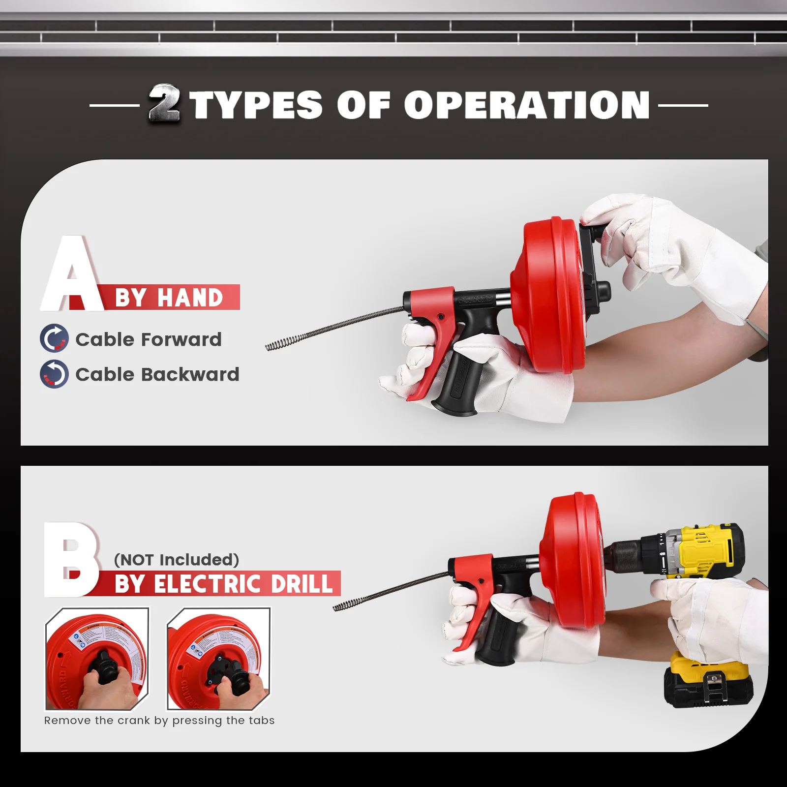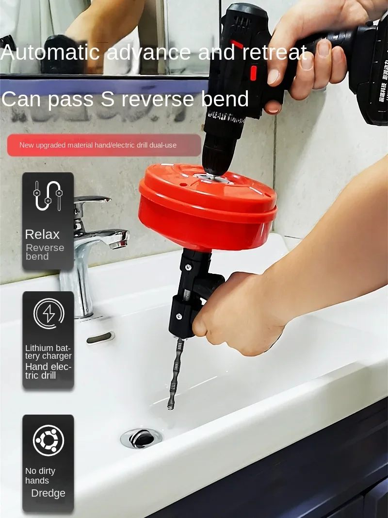 7.6M Drain Snake Unblocker Plumbing Drain Clog Remover Kitchen Toilet Sewer Blockage Cleaning Machine Hand Tool Channel Dredge
