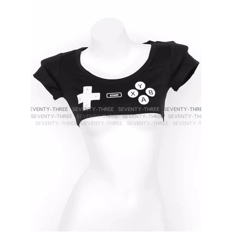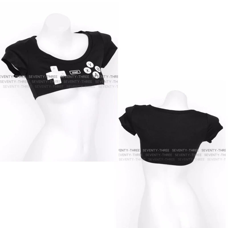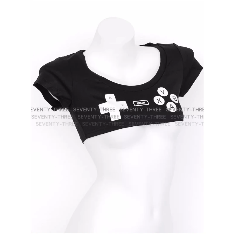 Anime Gamepad Printed Ultrashort T Shirt Women Mini Japanese Girl Top Sexy Underwear Short Sleeve Nightclub Role Play Outfits