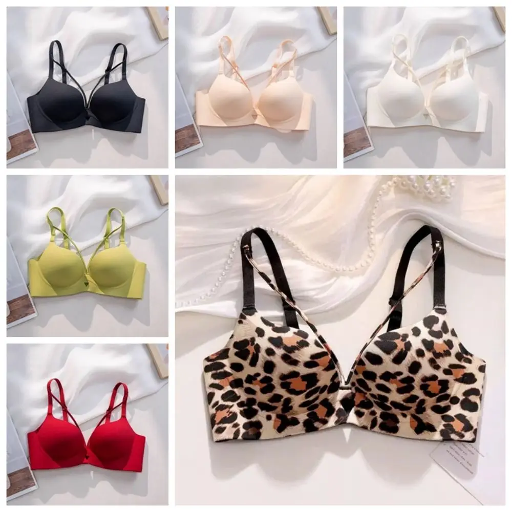 Breathable 3/4 Cup Push-up Bra Women Leopard Anti-sagging Seamless Underwear Lingerie Deep V Wireless Deep V Bra Girl
