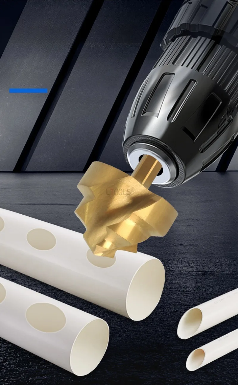 Titanium Plated Lifting Drill New Three Blade PPR Water Pipe Repair Drill Bit Precise Limit Opening Hole Drilling Hydraulic Tool