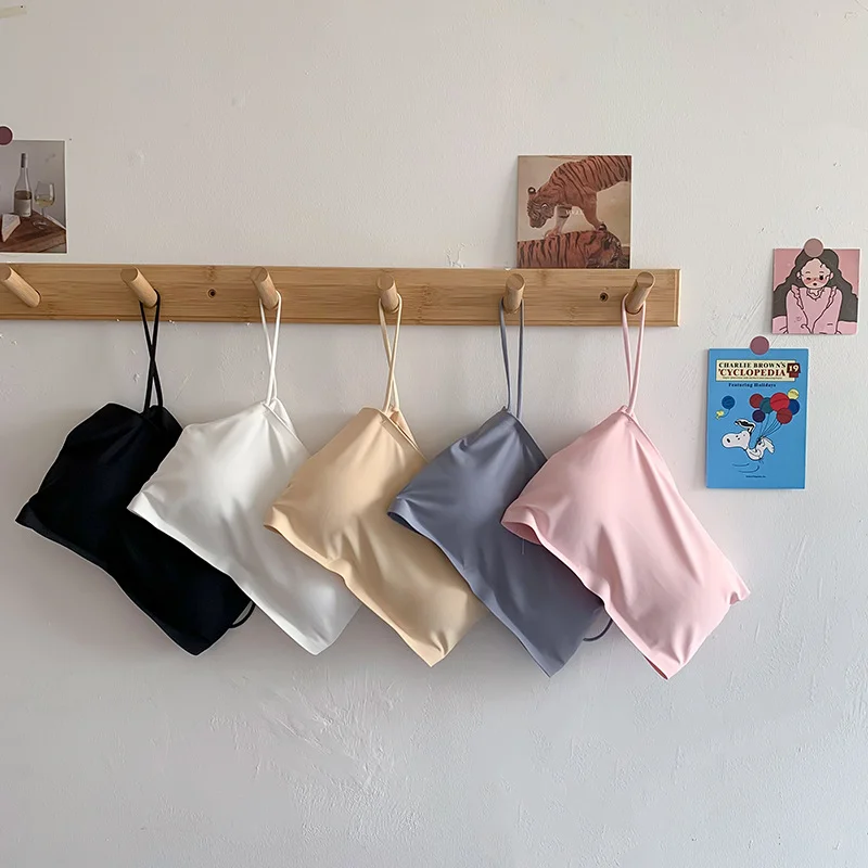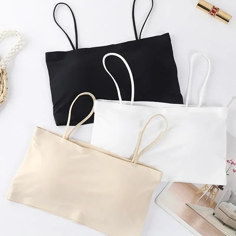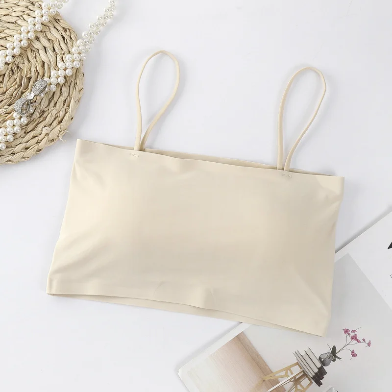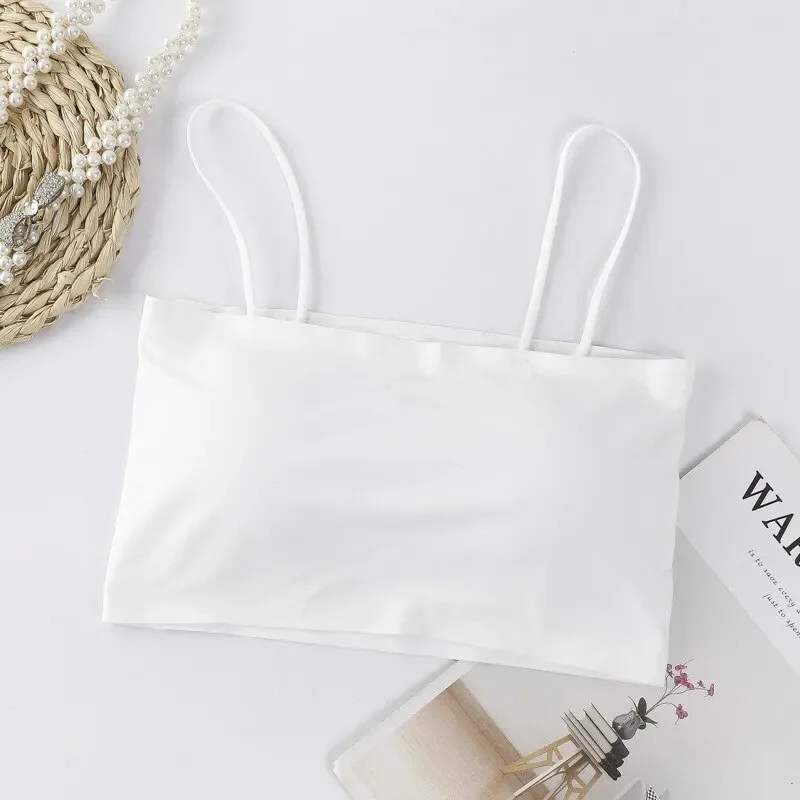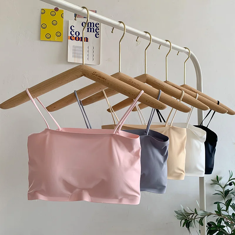 Women Crop Tops Sexy Solid Color Camisole Ice Silk Tube Top Seamless Skinny Sports Tank Top Wireless Underwear Bralet